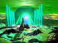 One planet in the Sphynx star systems remains unihabited and unexplored, even though it can sustain life: Koran. Strange craft reportedly stand as sentries to protect the untouched nature of Koran. Notice the similarity in design to the rings used in the ancient shrine of Pyrtha and the symbols on the altar of the Temple of Atlantis. |